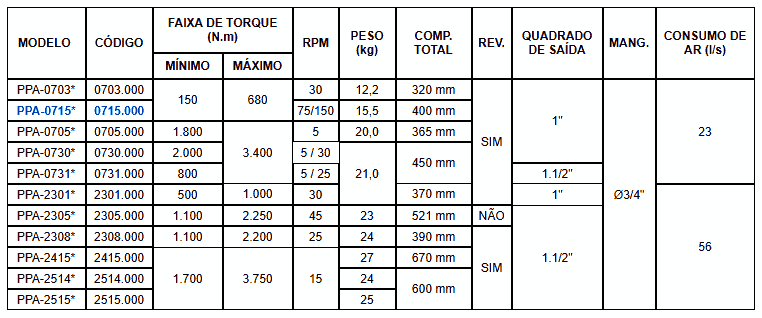 Industrial application stall-type torque wrenches with gearbox, torque range from 150 to 780 N·m. Designed for high performance, long durability, and easy maintenance, with an authorized technical support network available throughout the country. Stall-type torque control (adjusted via air supply), compatible with reaction bars or custom fixtures tailored to each application. Available in reversible or non-reversible models, and can be developed according to the customer’s specific requirements.