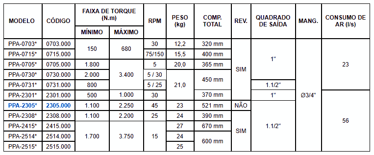 Industrial application stall-type torque wrenches, non-reversible, with torque range from 1,100 to 2,500 N·m. Designed for high performance, long durability, and easy maintenance, with an authorized technical support network available throughout the country. Stall-type torque control (adjusted via air supply), compatible with reaction bars or custom fixtures tailored to each application. Non-reversible model, and can be developed according to the customer’s specific requirements.