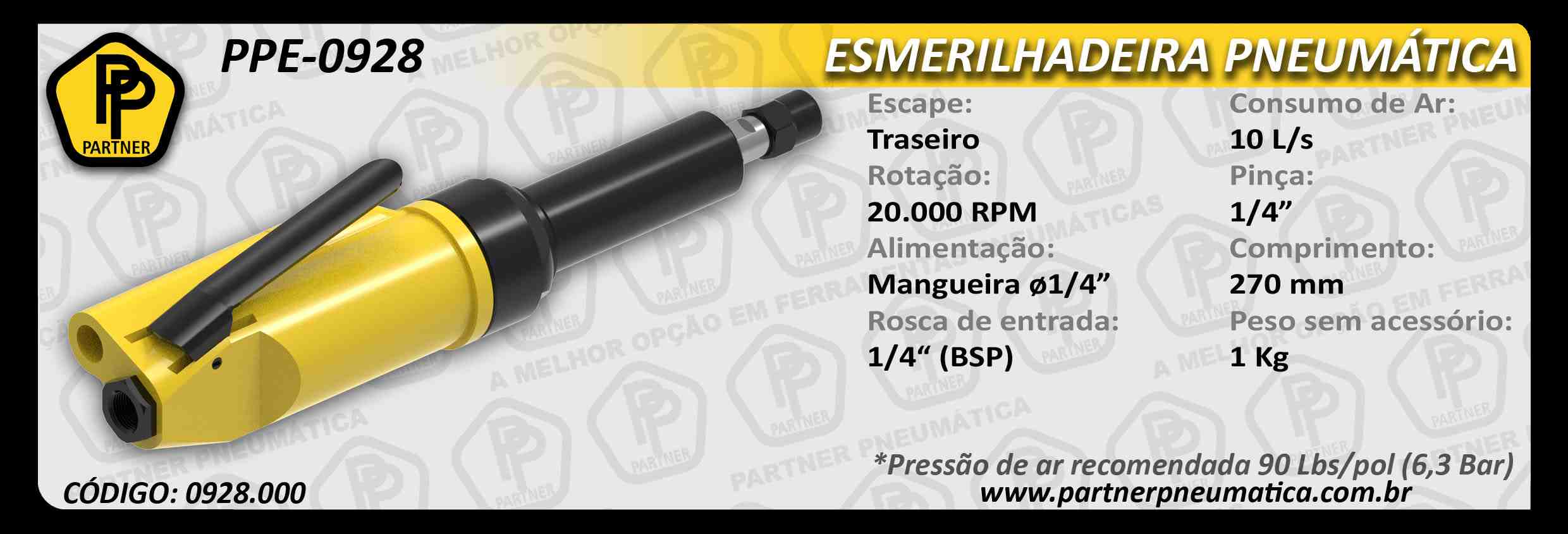 A Partner Pneumática foi fundada em 2003 para fabricar peças de reposição para ferramentas pneumáticas, atendendo empresas de manutenção e revenda. Com a demanda por novos equipamentos, passou a desenvolver engenharia própria e fornecer ferramentas para remoção de materiais.
