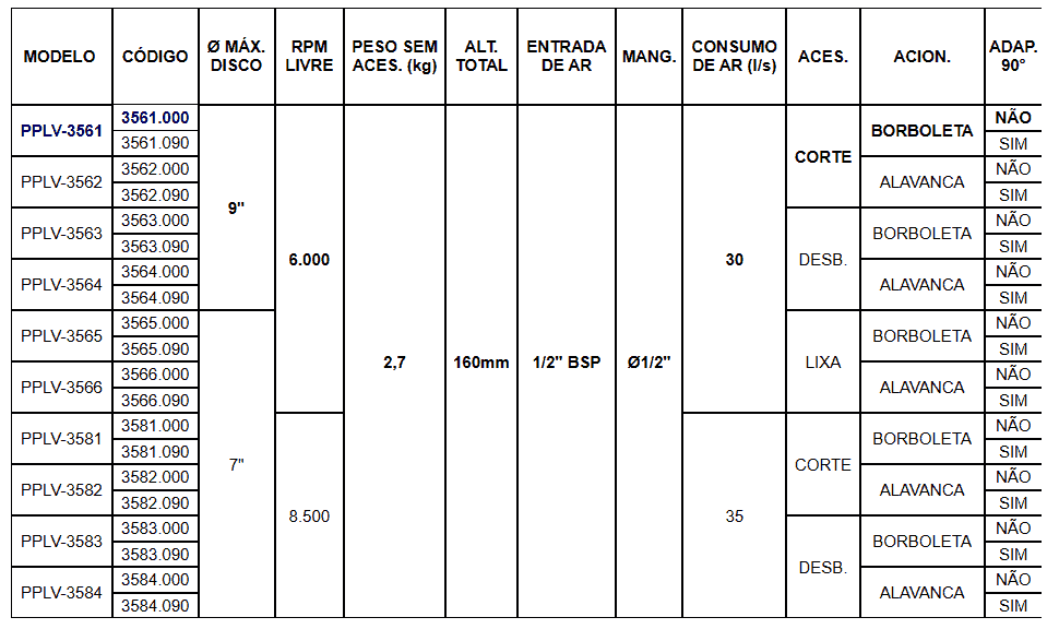 Lixadeira de alta potência Para disco de Corte de: 9" Proteção com 3 posições Acionamento Borboleta